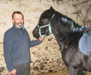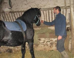 Nous n'avions plus d'échantillon de Mérens en stock depuis le départ de notre regretté Ebène. Et voici qu'arrive Dolmen, le jeune cheval (2 ans et demi) de Jérôme. Son débourrage est en cours et tout se déroule pour le mieux.