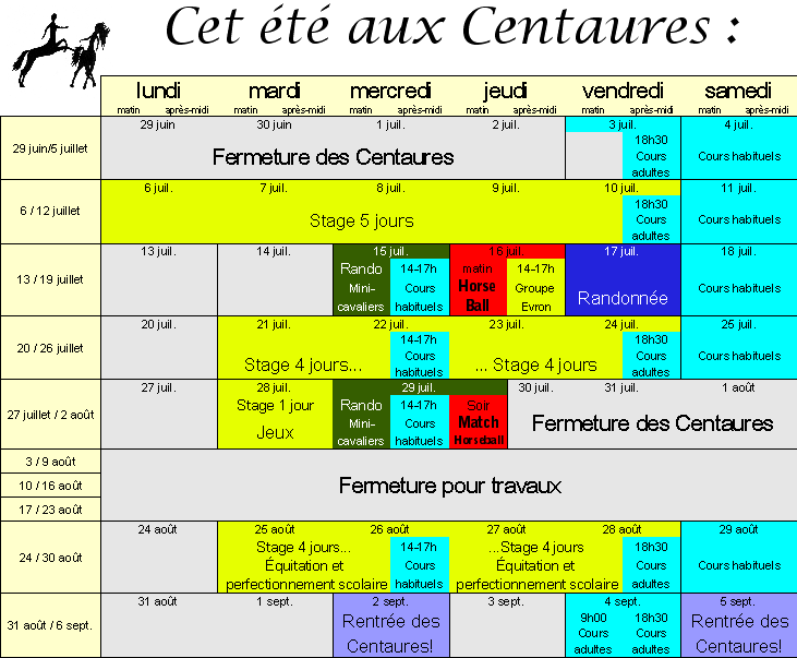 Dimanche 20 septembre aura lieu un peu partout la Journéee du Cheval. Aux Centaures, vous pourrez participer ou assister à la première édition du Concours Sauts-Grenus (à partir de 14h, voir ci-dessous), puis des baptêmes à poney et un goûter suivront vers 17h.