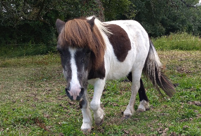 Aladin est arrivé aux Centaures le 1er avril 2022. Il a 25 ans. Lors de son accueil chez nous, il souffrait de fourbure chronique depuis des mois et avait grand mal à se déplacer. Suite à un régime sérieux, de bons soins et des antiinflammatoires, il a retrouvé une deuxième jeunesse et va très bien à présent.